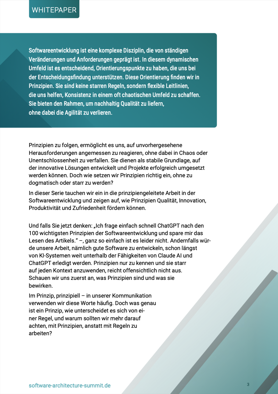 Ihr Leitfaden zu moderner Softwarearchitektur – Unser Whitepaper „Flexibel. Agil. Nachhaltig: Continuous Architecture“ beleuchtet die Bedeutung von Prinzipien als Leitlinien für nachhaltige und agile Softwareentwicklung.